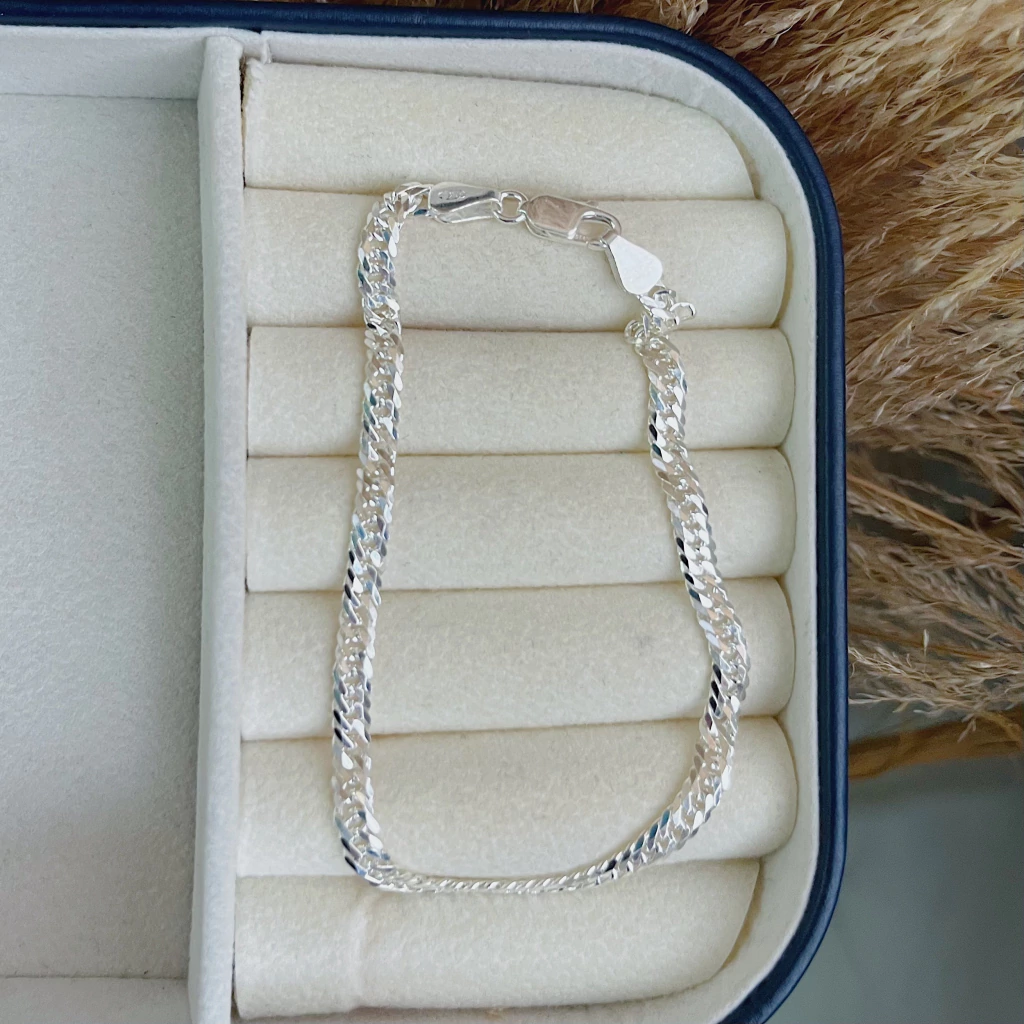 Conhecida como prata de lei. São joias produzidas com 92,5% de prata pura e o restante de outros metais para garantir sua resistência.