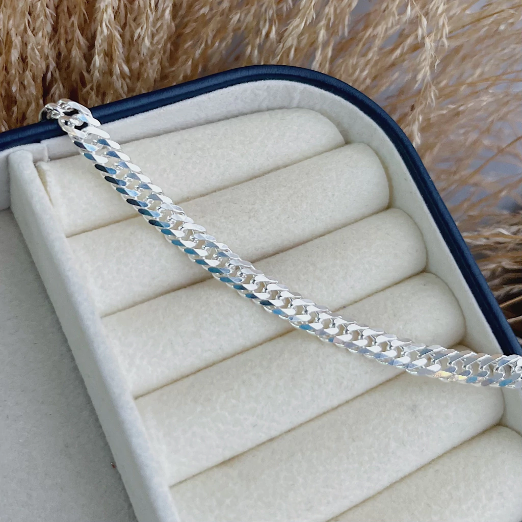 Conhecida como prata de lei. São joias produzidas com 92,5% de prata pura e o restante de outros metais para garantir sua resistência.